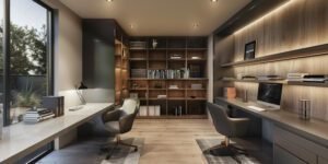 Em banheiros, o fundo do móvel nunca deve encostar direto na parede fria. Já no home office, projetos de móveis planejados em Sorocaba sem passa-fios transformam a mesa de móveis planejados em Sorocaba num caos de cabos visíveis.